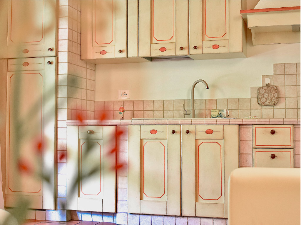 Ogni appartamento, arredato con cura nei toni caldi del giallo, richiama i colori del paesaggio che lo circonda, creando un’armonia perfetta tra interni ed esterni.